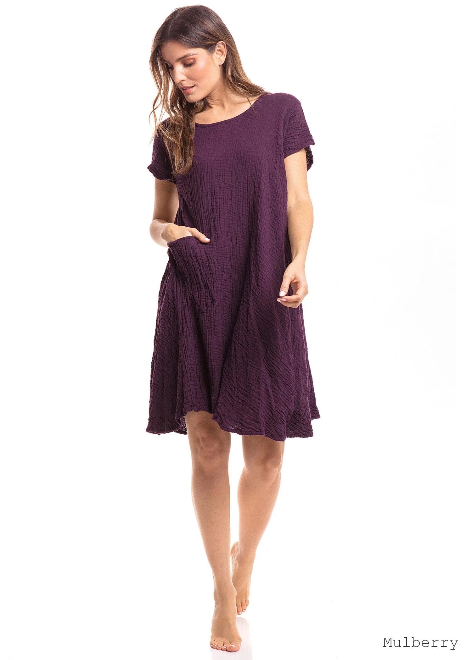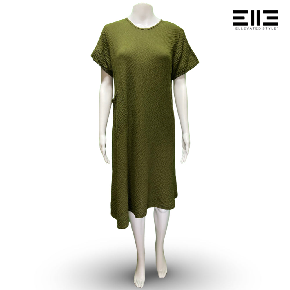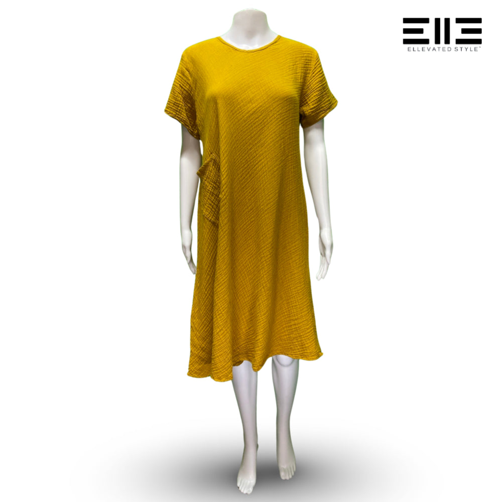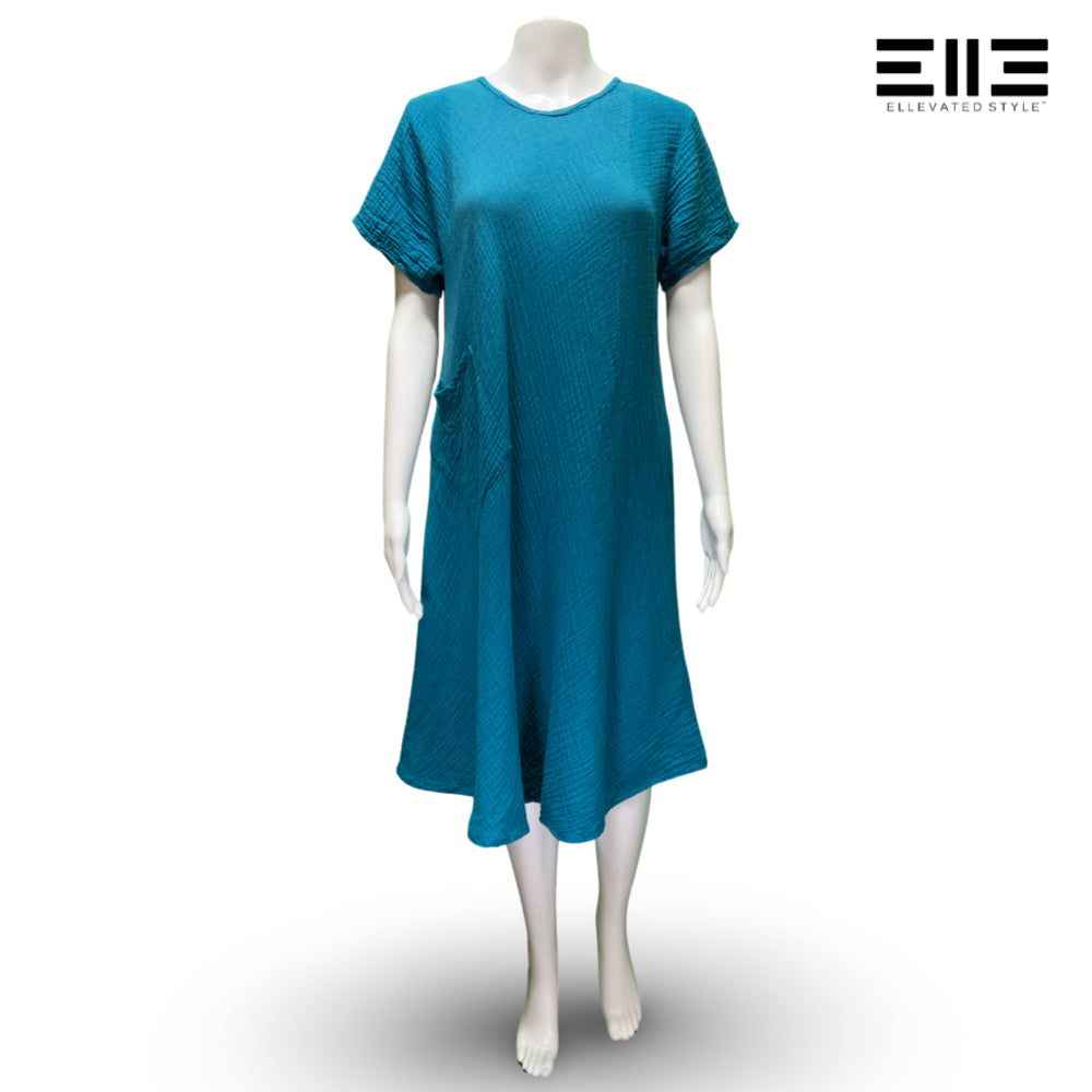 Bubble Cotton Lightweight Short Sleeve Dress w/ Pocket